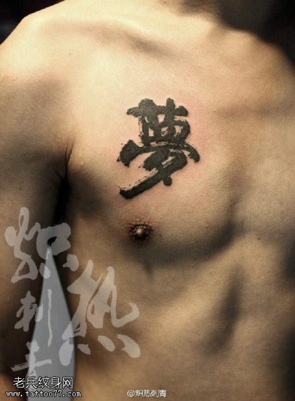 胸前的中国字符梦纹身图案