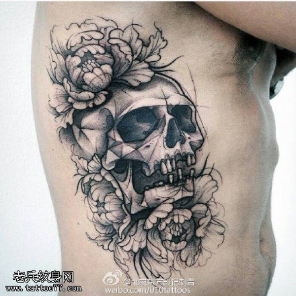 侧腰女骷髅刺青图案图片_骷髅纹身图案大全_纹身图吧