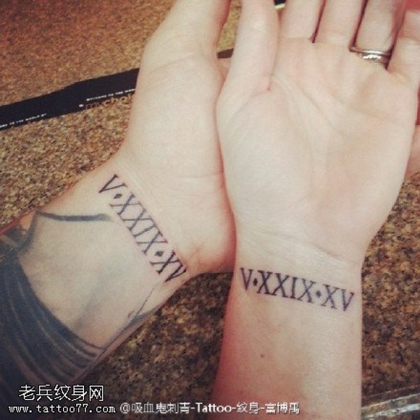 情侣手腕上的罗马数字纹身图案