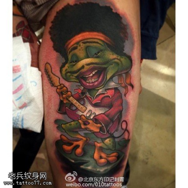 腿部的唐老鸭纹身图案