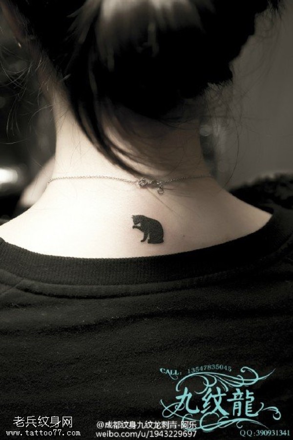 后颈部纹身小图--9张女生脖子后颈处的简约纹身图案