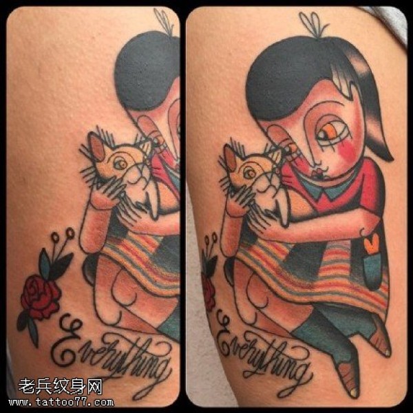 复古卡通红唇美女手臂纹身_卡通纹身图案大全_纹身图吧
