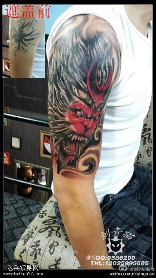 肩部覆盖齐天大圣纹身图案