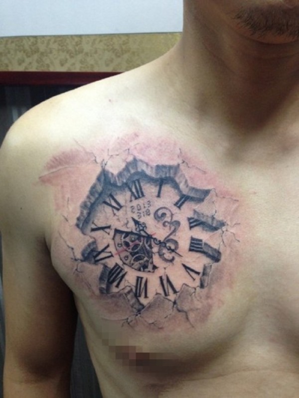 纹身图案胸部男 简洁大方的男生胸部纹身图案