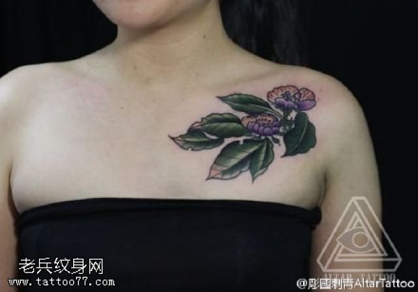 女生肩花纹身_15张女性双肩对称的肩花纹身图案作品图片