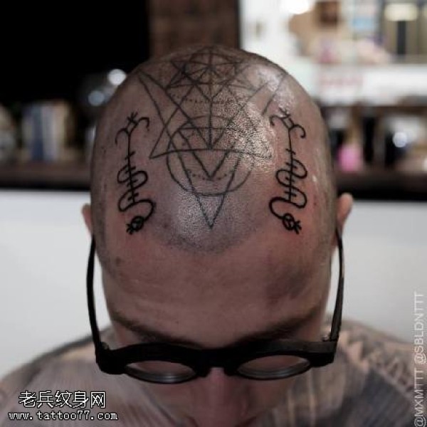 霸气男头部时尚纹身图片_头部纹身图案大全_纹身图吧