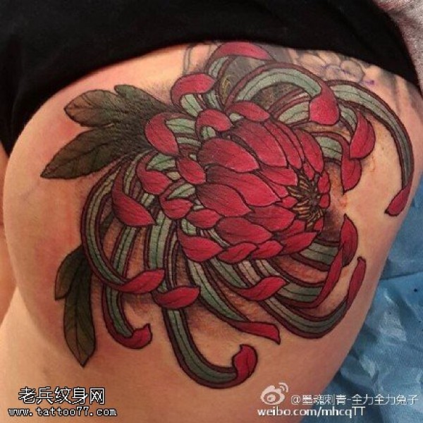 臀部大菊花纹身图案