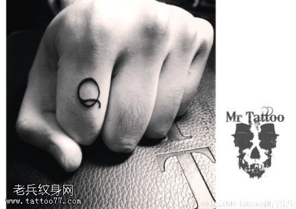 手指上的Q字符纹身图案