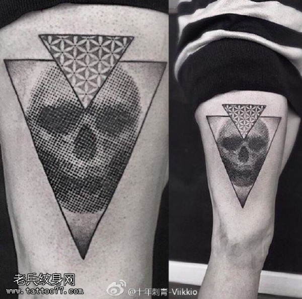 大腿三角点刺骷髅纹身图案