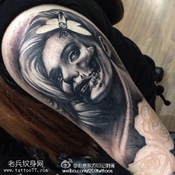 肩部的个性美女纹身图案