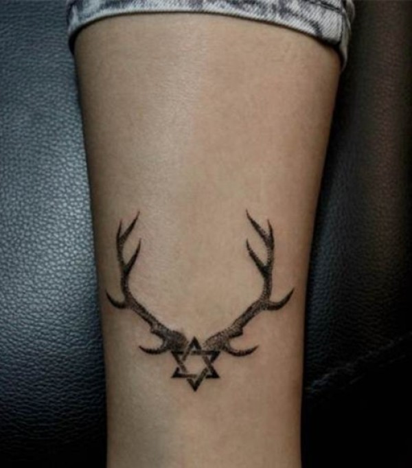 时尚创意组合 六芒星鹿角纹身图片