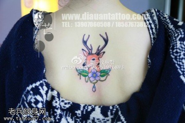 背部的小花鹿纹身图案