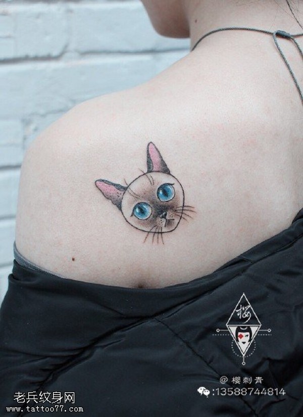 肩部的猫咪纹身图案