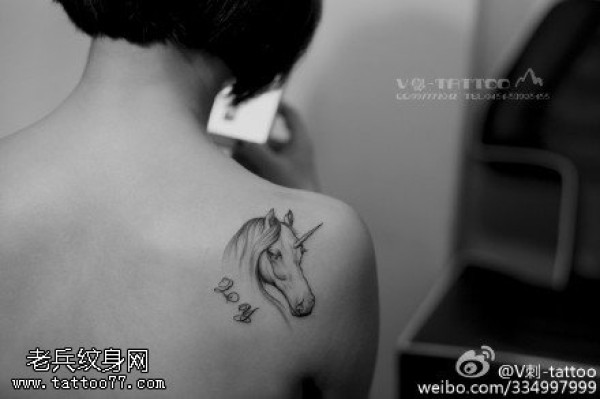 肩部的独角兽纹身图案