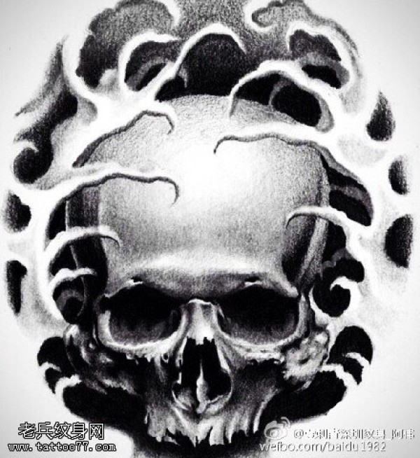 手稿逼真的骷髅头纹身图案
