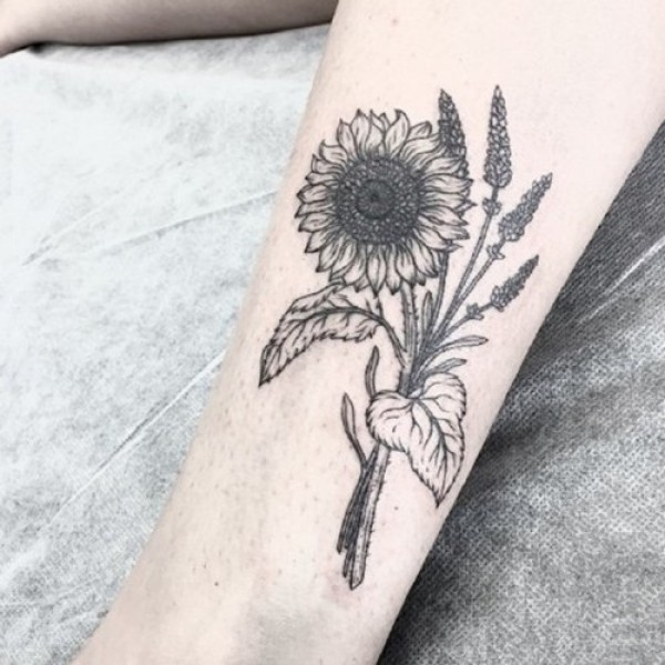 草图感向日葵纹身图案_植物纹身图案大全_纹身图吧