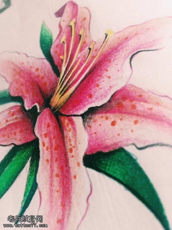 手绘百合花纹身图案