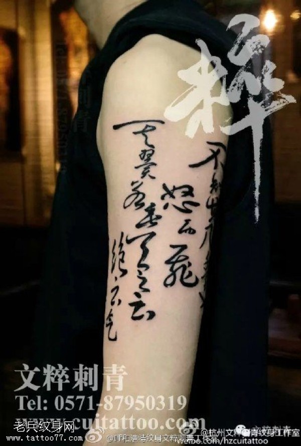 肩膀的书法纹身图案