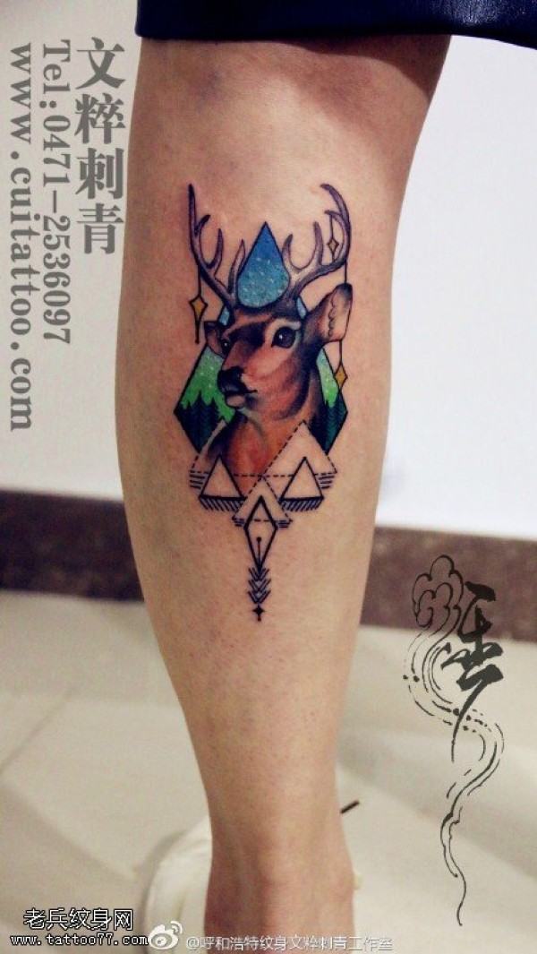 小腿上一款大象纹身图案_腿部纹身图案大全_纹身图吧