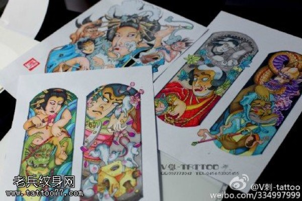 传统艺妓般若纹身图案手稿