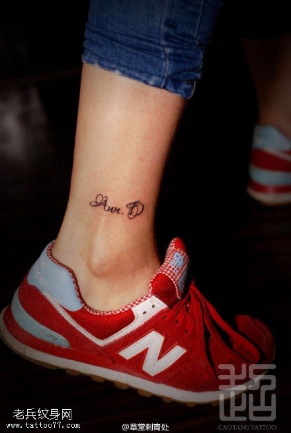脚腕上的英文签名纹身图案