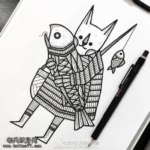 双鱼座纹身手稿_45张十二星座之双鱼手稿纹身图案