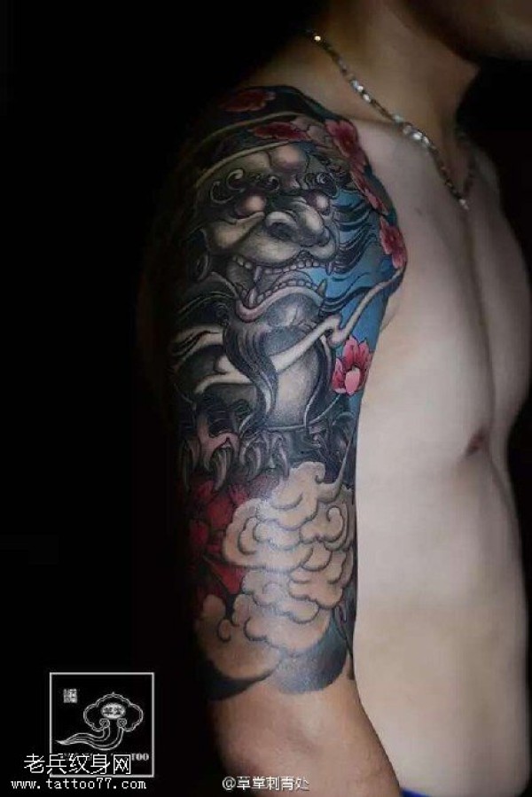 肩膀的狮子纹身图案