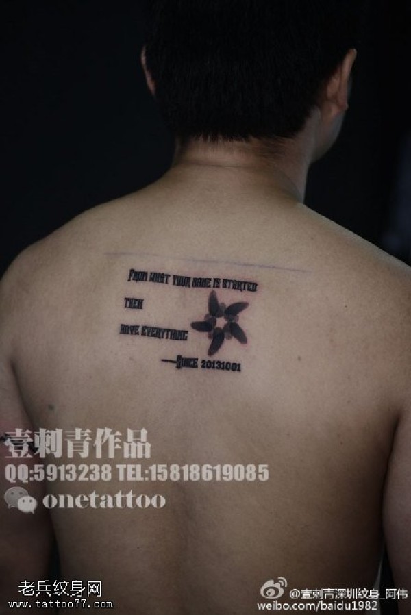 背部字符风车纹身图案