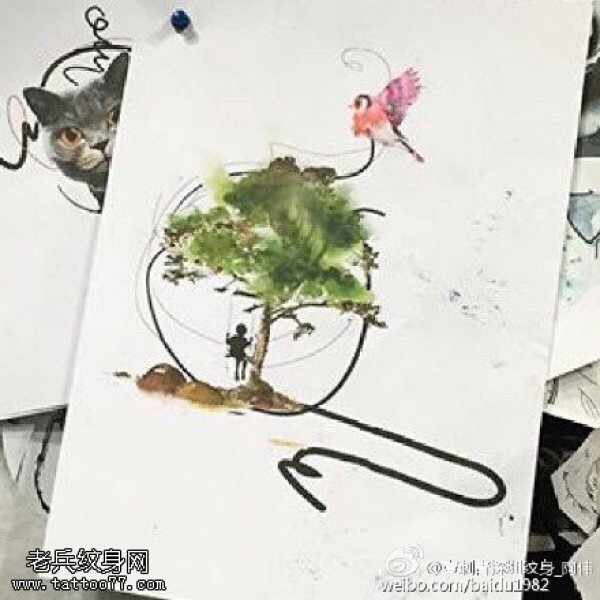 双鱼座纹身手稿_45张十二星座之双鱼手稿纹身图案