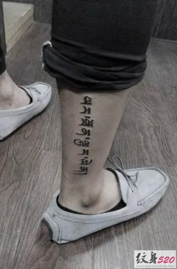 小腿部梵文纹身图案