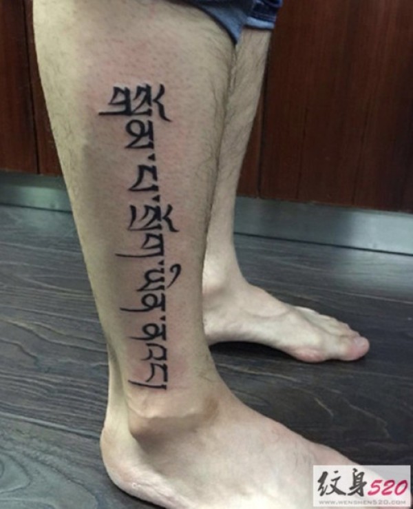 小腿部梵文纹身图案