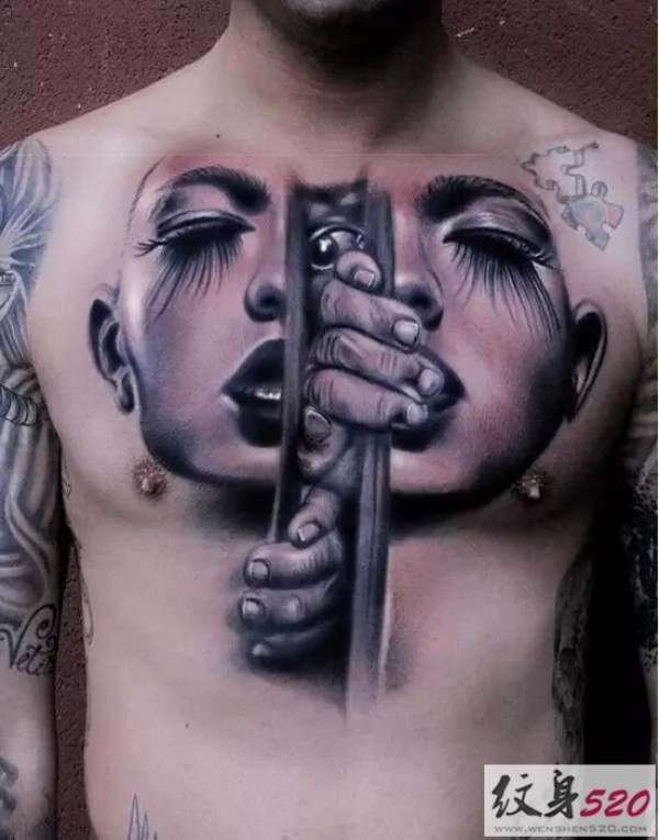 男生胸前经典的女性生殖器官纹身图案_胸部纹身图案大全_纹身图吧