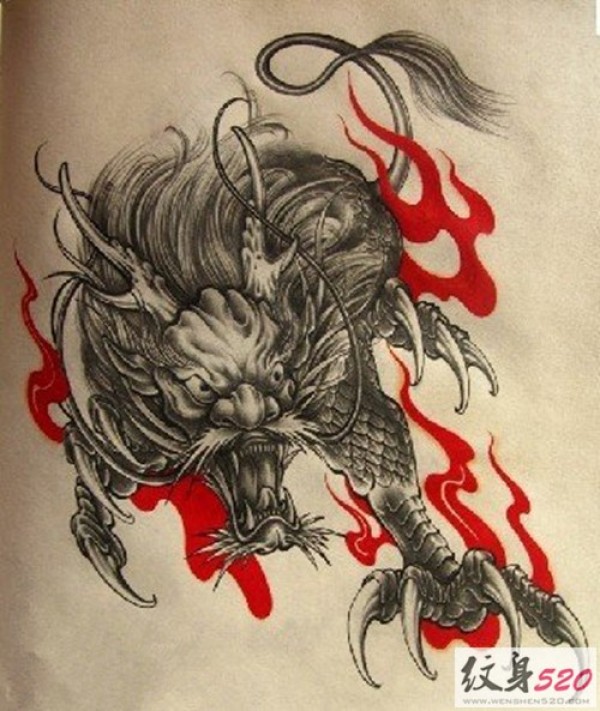 龙纹身手稿_一组老传统黑灰龙手稿纹身图案
