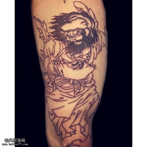 腿部点刺钟馗纹身图案