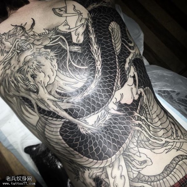 中国风满背点刺龙纹身图案