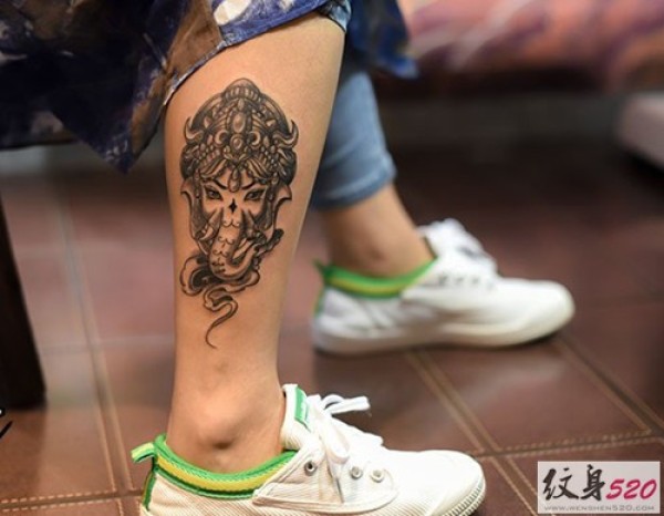 小腿上一款大象纹身图案_腿部纹身图案大全_纹身图吧