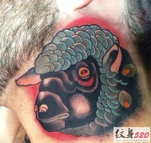 脖子上个性十足的彩色骷髅纹身_脖子纹身图案大全_纹身图吧