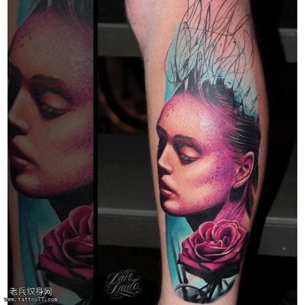 女生人物纹身图案 女生小腿上女生人物纹身图案