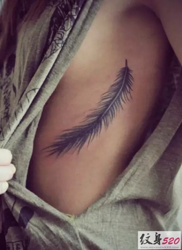 纤细柔美的腰部羽毛纹身