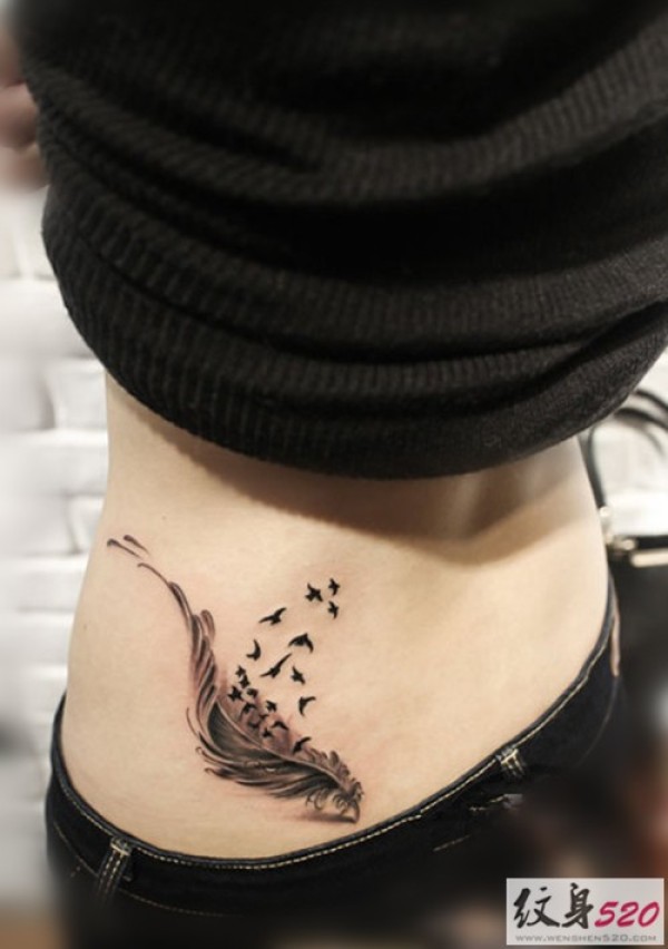 分享一款腰部时尚性感的蝶恋花纹身图案_腰部纹身图案大全_纹身图吧