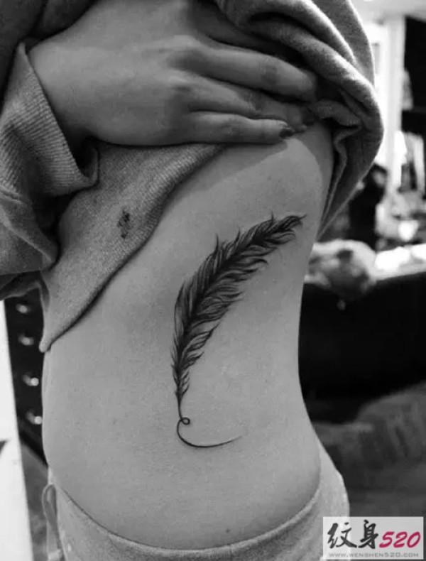 纤细柔美的腰部羽毛纹身