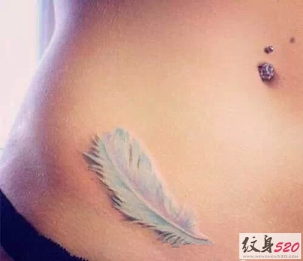 纤细柔美的腰部羽毛纹身