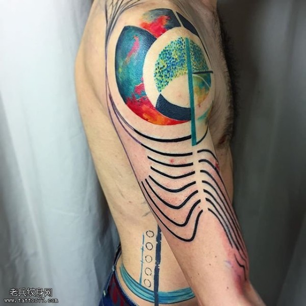 肩部水彩图腾纹身图案