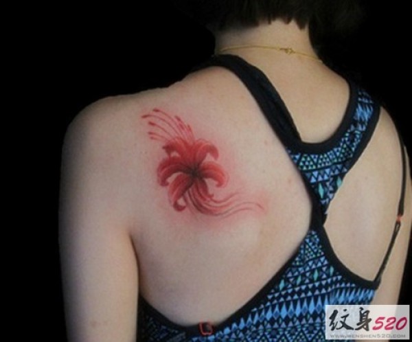 女生肩花纹身_15张女性双肩对称的肩花纹身图案作品图片