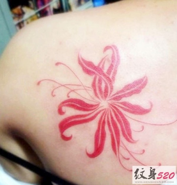 女生肩花纹身_15张女性双肩对称的肩花纹身图案作品图片