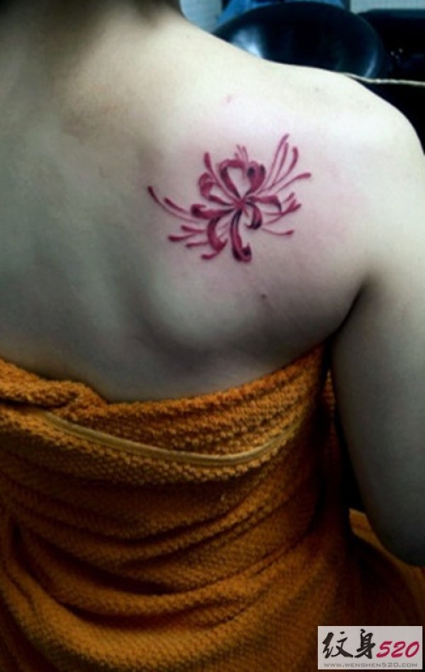 女生肩花纹身_15张女性双肩对称的肩花纹身图案作品图片