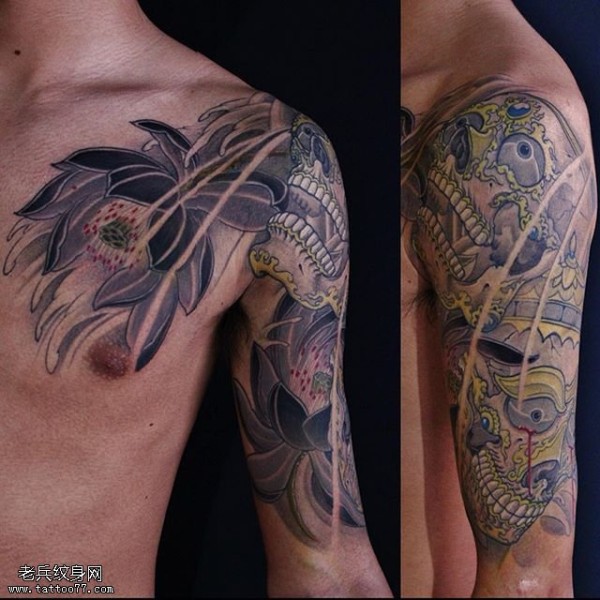 手臂莲花蛇纹身图案_臂部纹身图案大全_纹身图吧