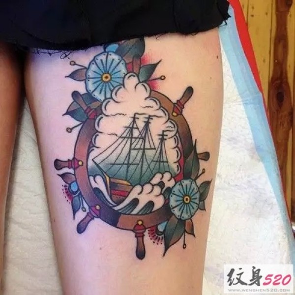 school花臂纹身--一组漂亮的school风格的花臂纹身图案作品