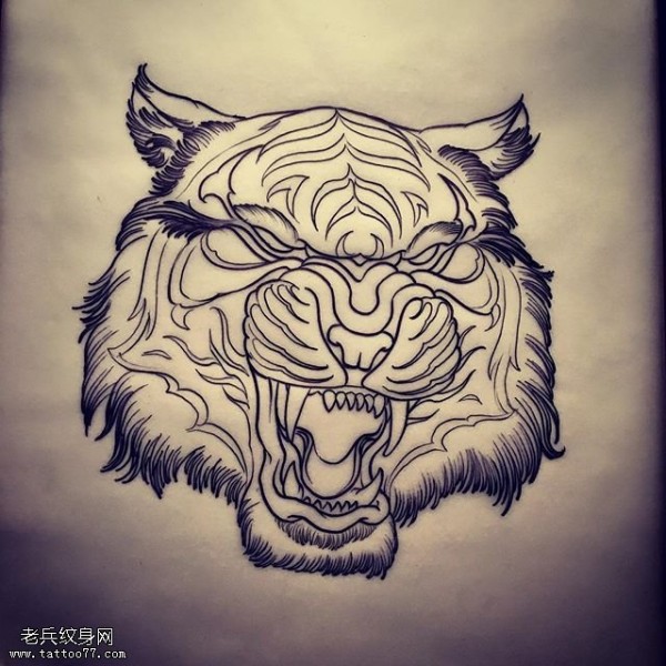 手稿线条狮子纹身图案