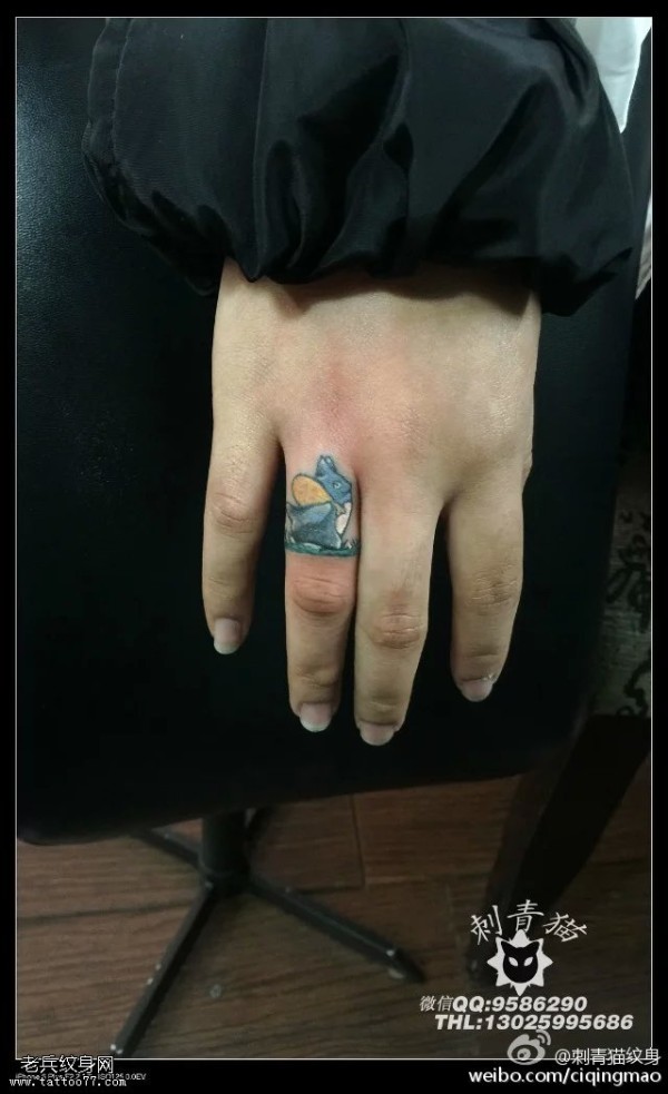 手指上的龙猫纹身图案